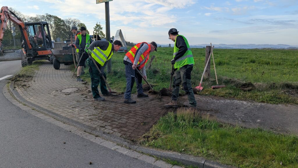 Ein besonderes Dankeschön gilt Polizeibeamter Frank Burkert, der die Helferinnen und Helfer am Kreisverkehr Habenichts absicherte und den Verkehr leitete — ohne ihn wären die Arbeiten dort so nicht möglich gewesen.