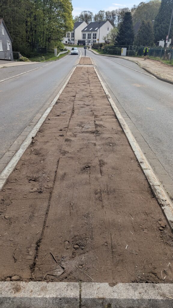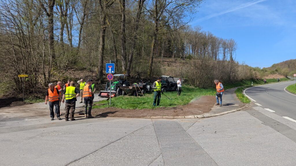 Am 18. April 2026 machten sich rund 20 Freiwillige des VVV Dhünn wieder an die Arbeit — und das Ergebnis kann sich demnächst sehen lassen: An mehreren Stellen rund ums Dorf wurden neue Blühstreifen und Blumeninseln angelegt, die Dhünn über den Sommer in voller Farbe erstrahlen lassen werden.
